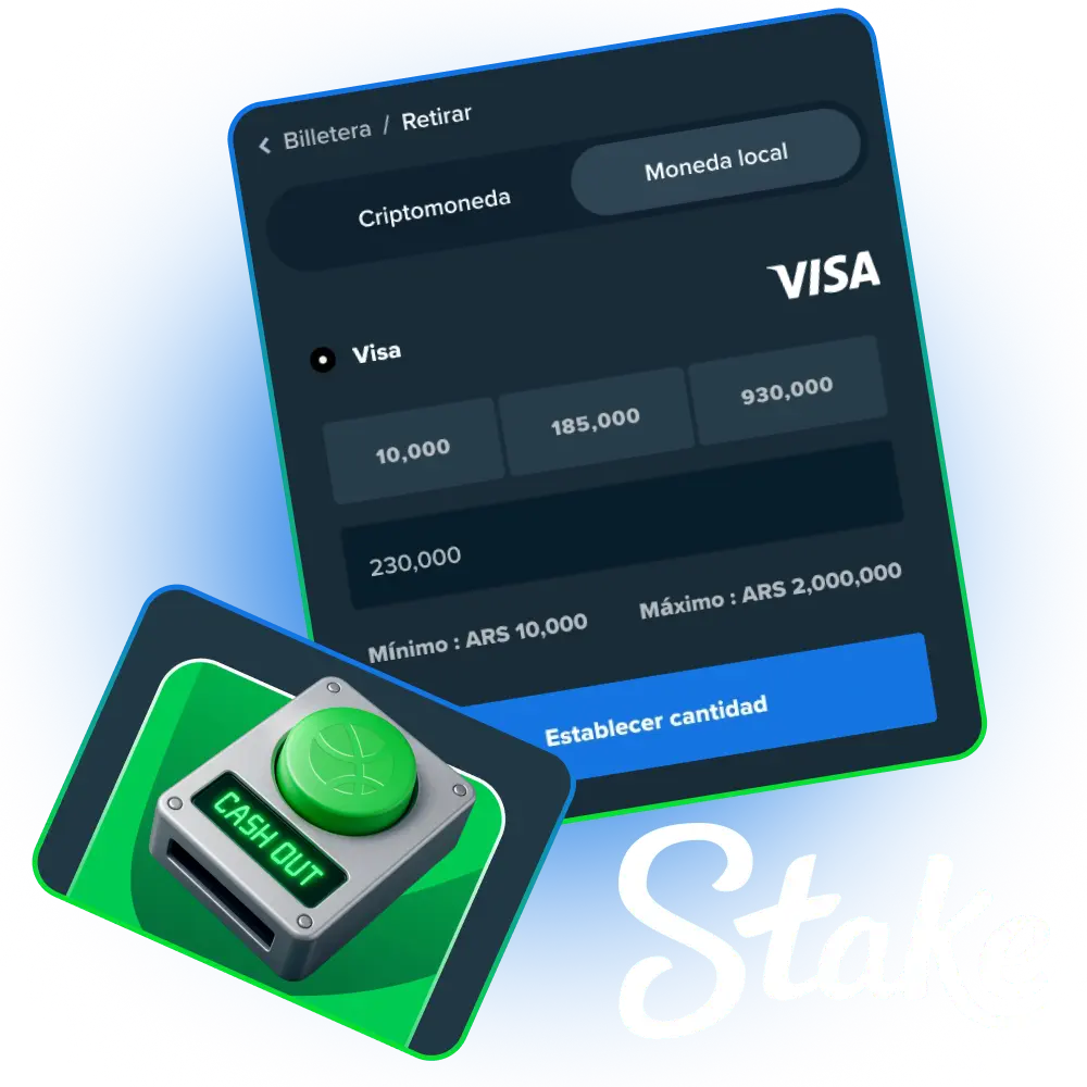 Podés solicitar un retiro en Argentina usando criptomonedas como Bitcoin, Ethereum, Litecoin y Tether, además de AstroPay, Visa y MasterCard directamente desde tu cuenta de juego en Stake Argentina. El monto mínimo de retiro es bajo y accesible, mientras que el máximo se adapta tanto a jugadores recreativos como a usuarios de alto volumen. Las criptomonedas se acreditan de forma rápida, mientras que las tarjetas y AstroPay siguen los tiempos habituales del proveedor. Podés elegir Bitcoin para transferencias veloces, USDT para montos estables, AstroPay para operar en pesos y tarjetas Visa o MasterCard para una mayor flexibilidad. Nuevos usuarios acceden a un Bono de bienvenida del 200% sobre el primer depósito, sujeto a términos.