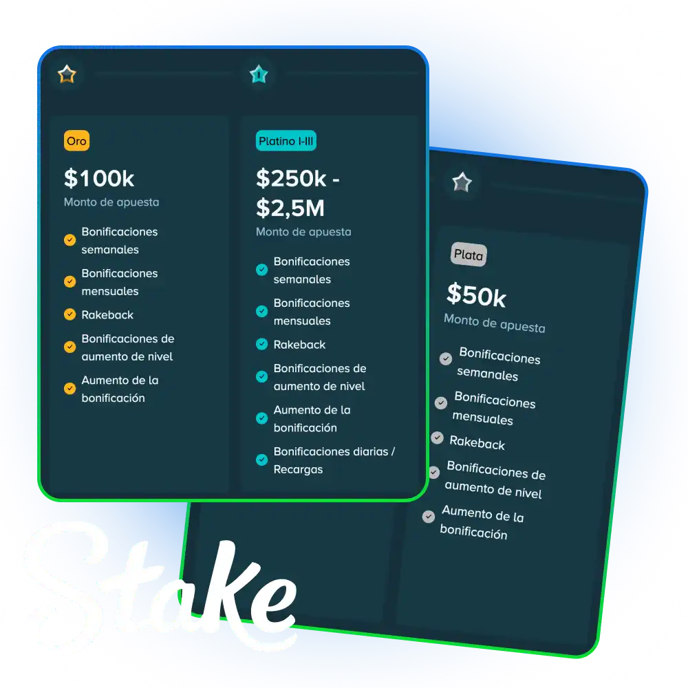 El programa VIP de Stake está dirigido a jugadores que participan de forma frecuente en el casino y en la sección de apuestas deportivas. Cada apuesta genera progreso dentro del sistema, permite ascender a nuevos niveles y acceder a recompensas.